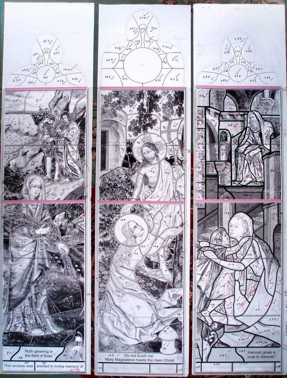 The cartoon is next, drawn or printed actual size with all pieces numbered.