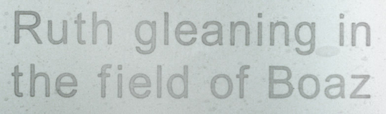 Example of sandblasted lettering. The alphabet was scanned; then the stencil was cut by machine.